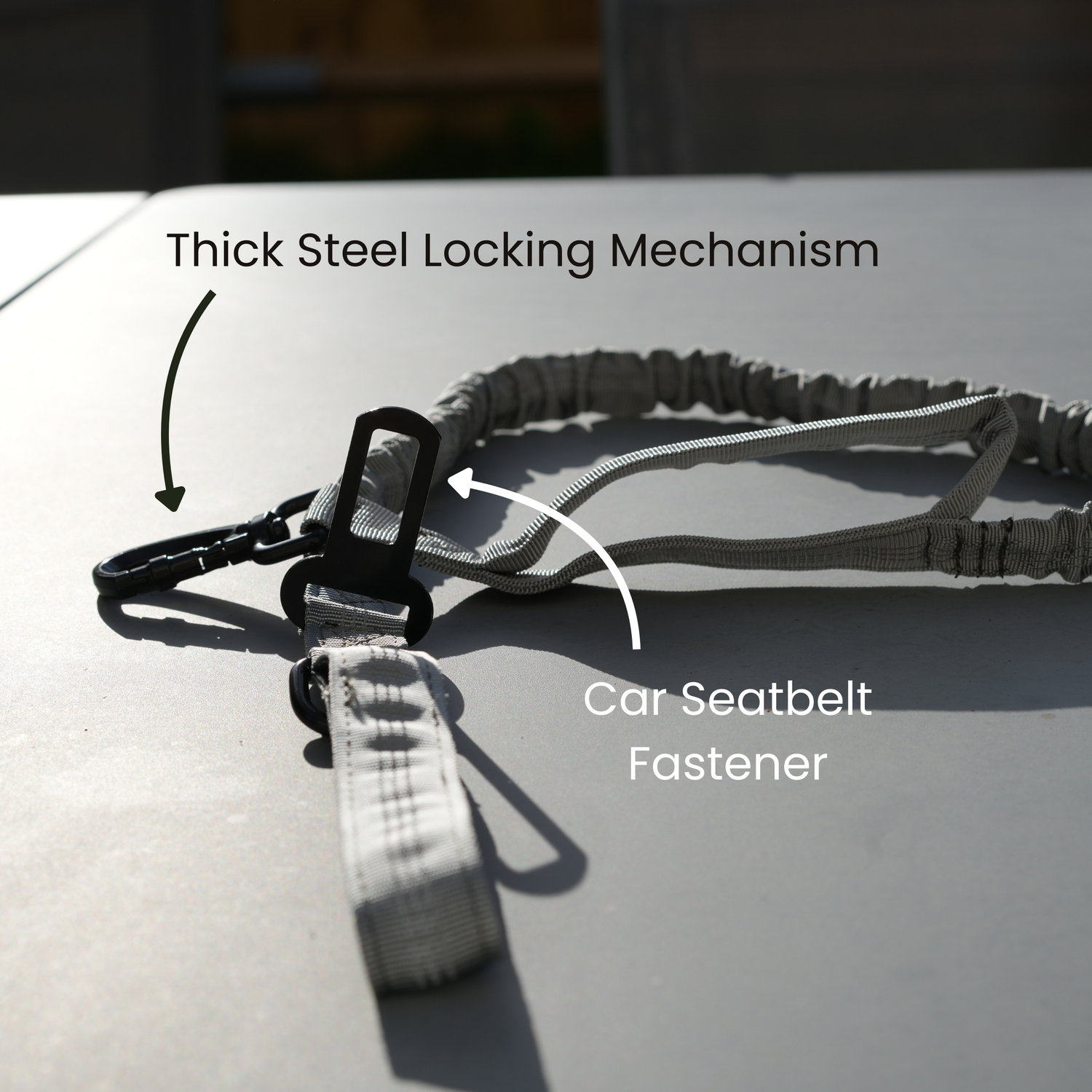 Paired with our thick steel locking to prevent unwanted escapes, our nylon leash also features a seatbelt car fastener for safe car trips!