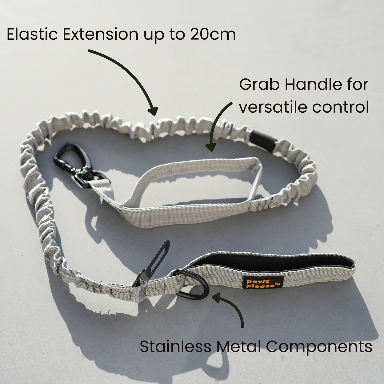 With extendable elasticity of up to 20cm, increase the leash length to 120cm. Also features a grab handle for versatile control, and thick stainless steel components for maximum durability!